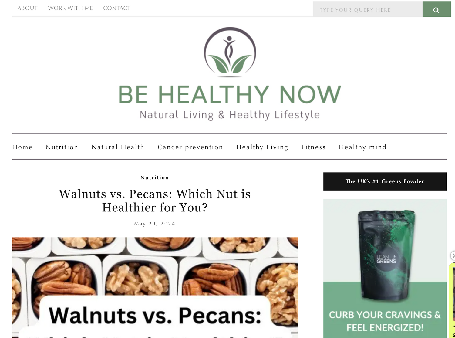 Be Healthy Now a comprehensive resource dedicated to holistic health and natural living. It covers topics such as nutrition, fitness, stress management, and toxin-free lifestyles. Petra shares her personal journey from unhealthy eating to a balanced diet, provides well-researched health articles, fitness tips, natural beauty product reviews, and easy, healthy recipes. The blog aims to empower readers to lead healthier, more natural lives and prevent illness through informed choices and lifestyle changes.